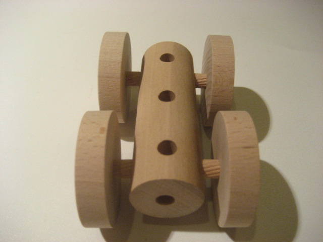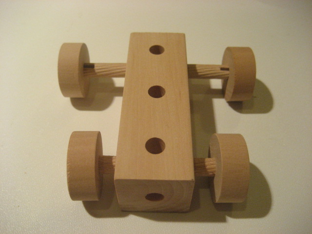 貫通穴組み木、5cmの直径車輪、6cmダボ棒を使用